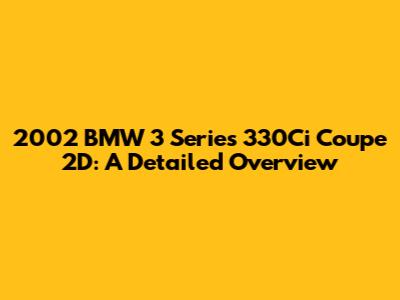 Hey guys! Let's dive into the world of the 2002 BMW 3 Series 330Ci Coupe 2D. This ride isn't just a car; it's a statement. Known for its sleek design and impressive performance, the 330Ci has carved out a special place in the hearts of car enthusiasts. Whether you're considering buying one, already own one, or are simply curious, this article will cover everything you need to know.