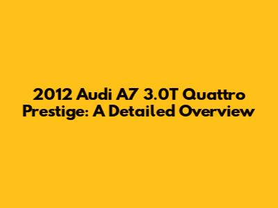 Hey guys! Let's dive deep into the 2012 Audi A7 3.0T Quattro Prestige. This car isn't just a ride; it's a statement. Combining sleek design with powerful performance, the A7 was designed to turn heads and provide a driving experience like no other. In this article, we'll explore everything that makes this particular model so special, from its engine and performance to its interior features and overall driving experience. Whether you're considering buying one, already own one, or are just curious, you're in the right place!