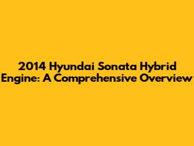 2014 Hyundai Sonata Hybrid Engine: Everything You Need To Know