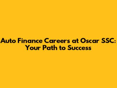 Auto Finance Careers At Oscar SSC: Your Path To Success