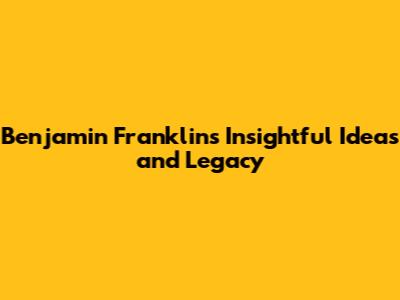 Benjamin Franklin's Insightful Ideas And Legacy
