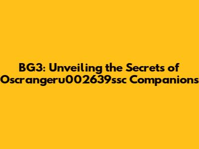 BG3: Unveiling The Secrets Of Oscrangeru002639ssc Companions