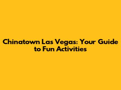 Chinatown Las Vegas: Your Guide To Fun Activities