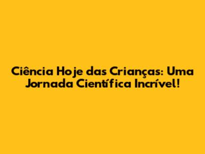 Ciência Hoje Das Crianças: Uma Jornada Científica Incrível!