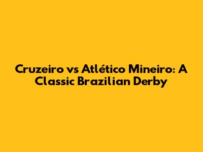 Cruzeiro Vs Atlético Mineiro: A Classic Brazilian Derby