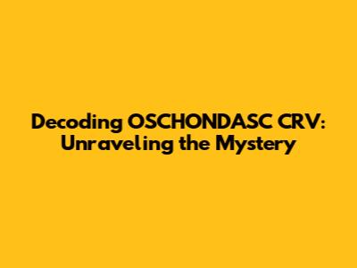 Decoding OSCHONDASC CRV: Unraveling The Mystery