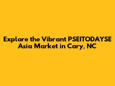 Hey guys! If you're looking to dive into a world of unique flavors, authentic products, and a cultural experience right here in Cary, North Carolina, then let's talk about the PSEITODAYSE Asia Market. This isn't just your run-of-the-mill grocery store; it's a vibrant hub where you can explore the diverse tastes and traditions of Asia. Whether you're an experienced foodie, a curious cook, or simply someone who appreciates quality and variety, this market has something special for you.