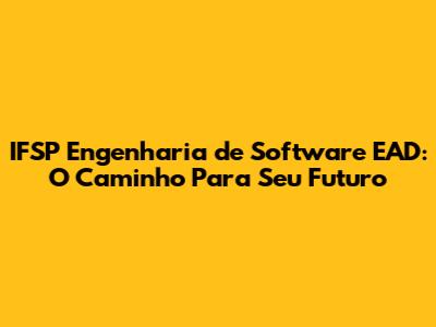 IFSP Engenharia de Software EAD: O Caminho Para Seu Futuro