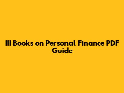 III Books On Personal Finance: PDF Guide