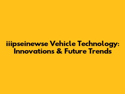 Iiipseinewse Vehicle Technology: Innovations & Future Trends