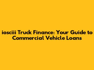 Iosciii Truck Finance: Your Guide To Commercial Vehicle Loans