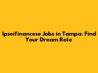 Ipseifinancese Jobs In Tampa: Find Your Dream Role