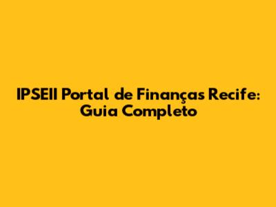 IPSEII Portal De Finanças Recife: Guia Completo