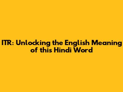 ITR: Unlocking The English Meaning Of This Hindi Word