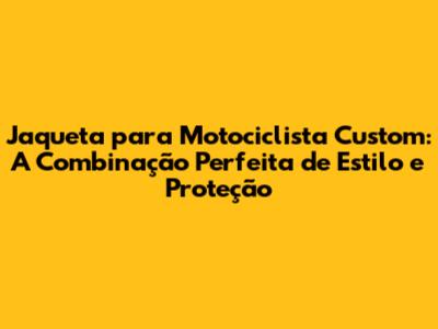 Jaqueta Para Motociclista Custom: Estilo E Segurança Na Estrada