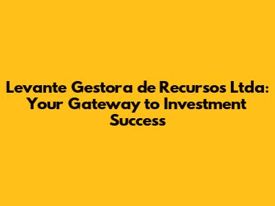 Hey everyone, let's dive into the world of Levante Gestora de Recursos Ltda. This article will be your go-to resource for understanding who they are, what they do, and how they can potentially help you grow your wealth. We'll break down the jargon, explore their investment strategies, and give you a clear picture of whether Levante Gestora might be the right fit for your financial goals. So, grab a coffee, and let's get started!