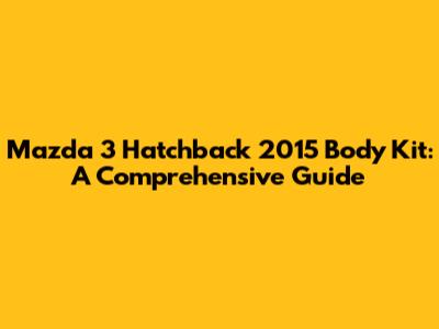 A body kit is a fantastic way to transform the look of your 2015 Mazda 3 Hatchback. By understanding the different types of components, materials, and installation options, you can make an informed decision and choose a kit that perfectly matches your style and budget. With proper installation and maintenance, your body kit will keep your Mazda 3 looking sharp for years to come. So go ahead, give your ride the upgrade it deserves!