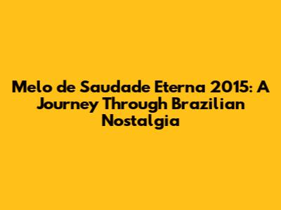 Melo De Saudade Eterna 2015: A Journey Through Brazilian Nostalgia