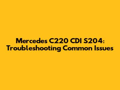 Mercedes C220 CDI S204: Troubleshooting Common Issues