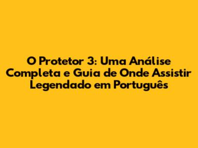 O Protetor 3, também conhecido como The Equalizer 3, é o filme de ação e suspense que está dando o que falar! Se você está procurando uma maneira de assistir ao filme legendado em português, você veio ao lugar certo. Neste guia completo, vamos explorar tudo sobre O Protetor 3, desde a trama e elenco até as plataformas onde você pode assistir, tudo legendado em português. Prepare a pipoca, porque a emoção está garantida!