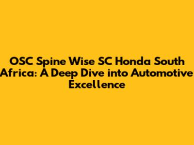 Now, let's talk about the specifics of OSC Spine Wise SC. OSC Spine Wise SC isn't a typical model name but likely refers to a specific initiative, dealership program, or a special edition offering related to Honda vehicles in South Africa. It could be a collaboration, a service package, or even a financing option designed to make Honda ownership more accessible. To understand exactly what OSC Spine Wise SC entails, we need to consider a few possibilities:
