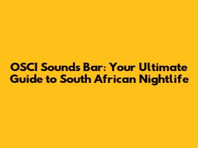 OSCI Sounds Bar: Your Ultimate Guide To South African Nightlife