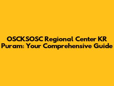 OSCKSOSC Regional Center KR Puram: Your Comprehensive Guide