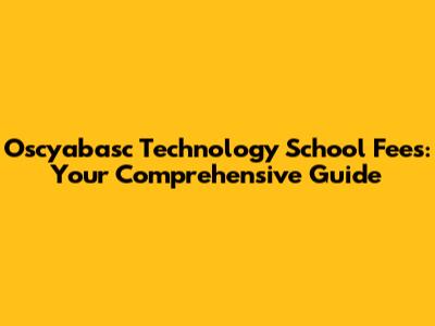 Oscyabasc Technology School Fees: Your Comprehensive Guide