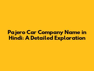 Pajero Car Company Name In Hindi: A Detailed Exploration
