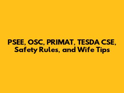 PSEE, OSC, PRIMAT, TESDA CSE, Safety Rules, And Wife Tips