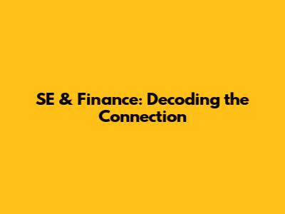 SE & Finance: Decoding The Connection