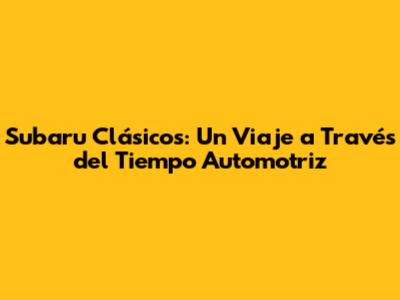 Subaru Clásicos: Un Viaje A Través Del Tiempo Automotriz