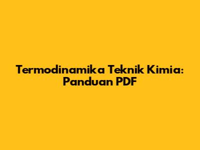 Termodinamika Teknik Kimia: Panduan PDF