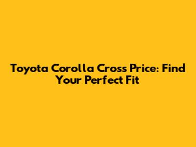 Toyota Corolla Cross Price: Find Your Perfect Fit