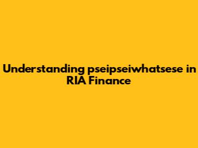 Understanding Pseipseiwhatsese In RIA Finance