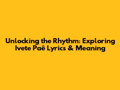 Unlocking The Rhythm: Exploring 'Ivete Paê' Lyrics & Meaning