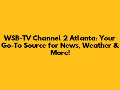 Hey everyone! Are you looking for the latest happenings in Atlanta? Well, look no further! This article dives deep into WSB-TV Channel 2, your trusted source for news, weather, and a whole lot more. We're talking about everything from breaking news alerts to in-depth investigations, plus your daily dose of sunshine and those all-important traffic updates. So, buckle up, grab a coffee (or your beverage of choice), and let's explore what makes WSB-TV Channel 2 in Atlanta so awesome. Seriously, understanding your local news source is super important, and WSB-TV has been a cornerstone of Atlanta's community for ages. We'll chat about the history, the personalities, the programming, and why you should tune in. This is your ultimate guide, so consider yourselves informed and ready to navigate the ever-changing landscape of local news! Let's get this show on the road, shall we?