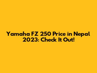 Hey guys! Are you looking for the Yamaha FZ 250 price in Nepal for 2023? Well, you've come to the right place. The Yamaha FZ 250 is a popular choice among riders in Nepal, known for its blend of style, performance, and affordability. In this article, we'll dive deep into everything you need to know about the Yamaha FZ 250, including its price, specs, features, and where to buy it. So, buckle up and let’s get started!